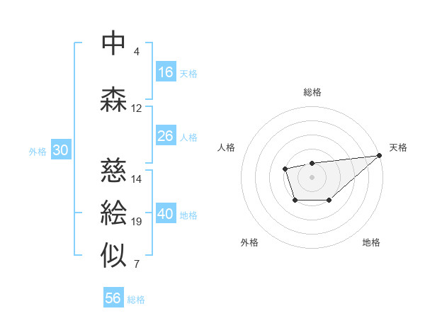 中森 慈絵似さんを姓名の画数から五運を鑑定