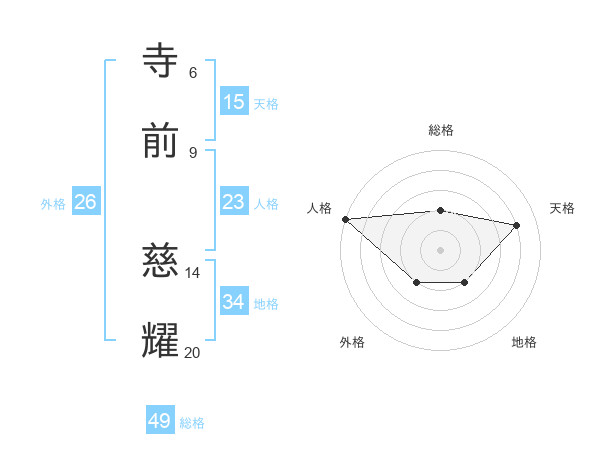 寺前 慈耀さんの総格は49画の2点!