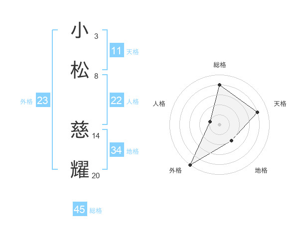 小松 慈耀さんの総格は45画の4点!