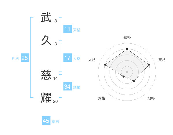 武久 慈耀さんの総格は45画の4点!