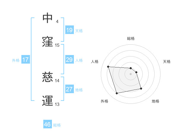 中窪 慈運さんを姓名の画数から五運を鑑定