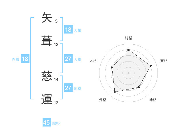 矢葺 慈運さんの総格は45画の4点!