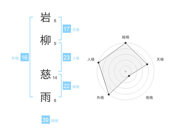 岩柳 慈雨さんを姓名の画数から五運を鑑定