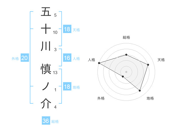 五十川 慎ノ介さんを姓名の画数から五運を鑑定