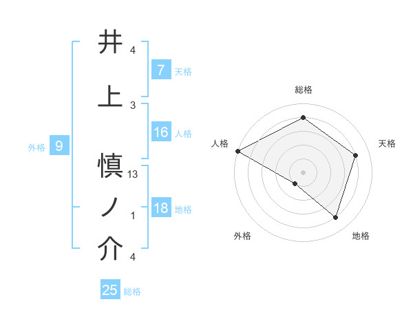 井上 慎ノ介さんを姓名の画数から五運を鑑定
