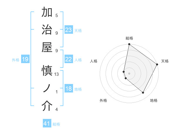 加治屋 慎ノ介さんの天格は23画の5点!