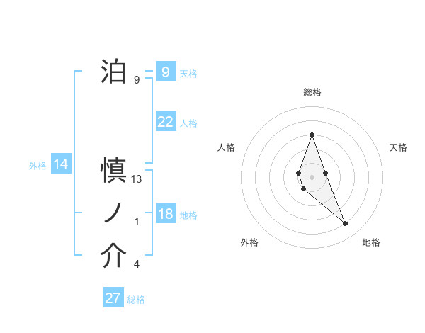 泊 慎ノ介さんを姓名の画数から五運を鑑定