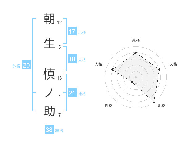 朝生 慎ノ助さんを姓名の画数から五運を鑑定