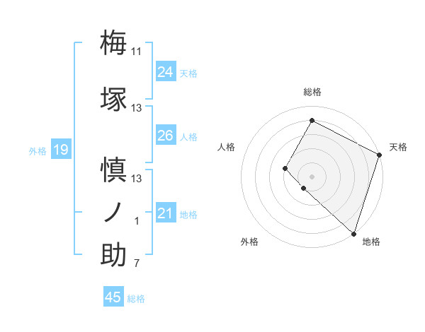 梅塚 慎ノ助さんを姓名の画数から五運を鑑定