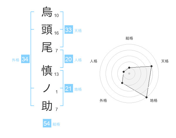 烏頭尾 慎ノ助さんの総格は54画の1点!