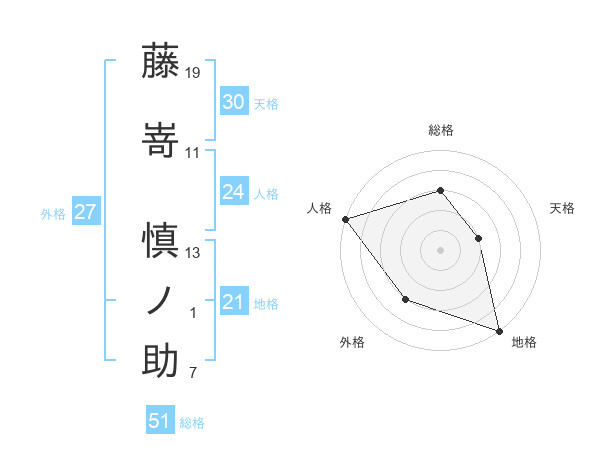 藤嵜 慎ノ助さんの総格は51画の3点!