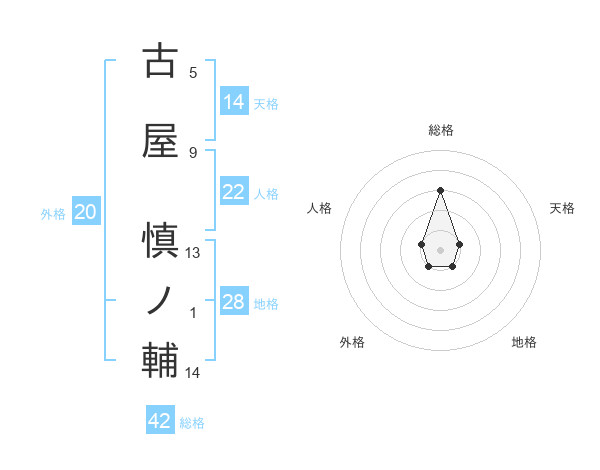 古屋 慎ノ輔さんを姓名の画数から五運を鑑定