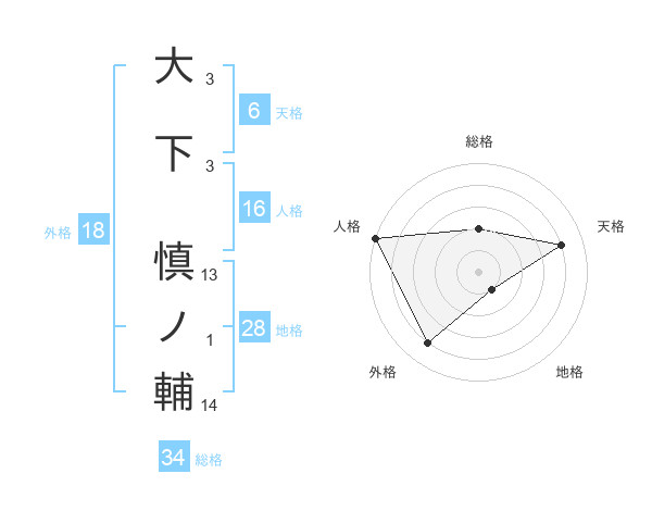 大下 慎ノ輔さんを姓名の画数から五運を鑑定