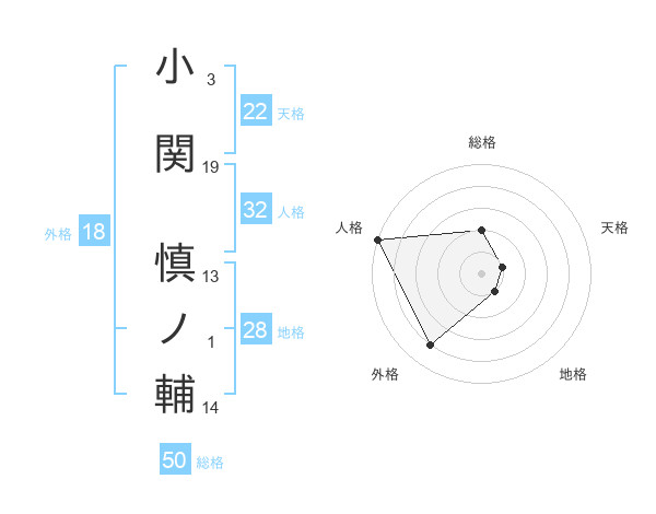 小関 慎ノ輔さんの天格は22画の1点!