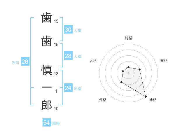 歯歯 慎一郎さんの天格は30画の2点!