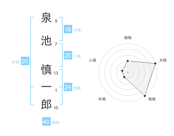 泉池 慎一郎さんを姓名の画数から五運を鑑定