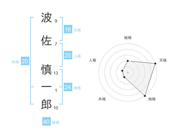 波佐 慎一郎さんを姓名の画数から五運を鑑定