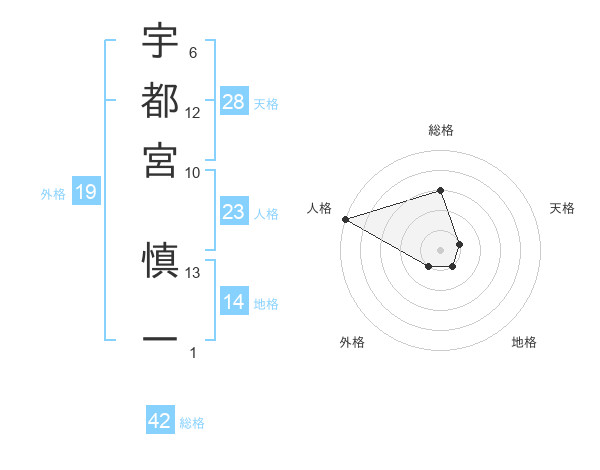 宇都宮 慎一さんを姓名の画数から五運を鑑定