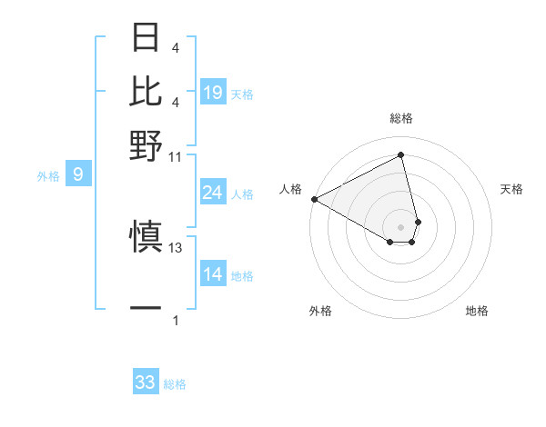 日比野 慎一さんを姓名の画数から五運を鑑定