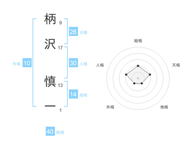 柄沢 慎一さんの総格は40画の2点!