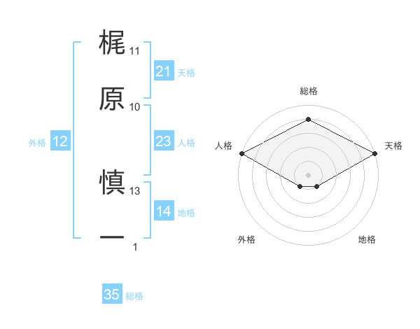 梶原 慎一さんの天格は21画の5点!