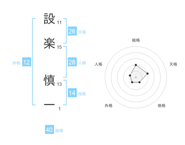 設楽 慎一さんを姓名の画数から五運を鑑定