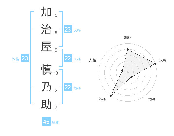 加治屋 慎乃助さんの総格は45画の4点