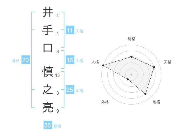 井手口 慎之亮さんを姓名の画数から五運を鑑定
