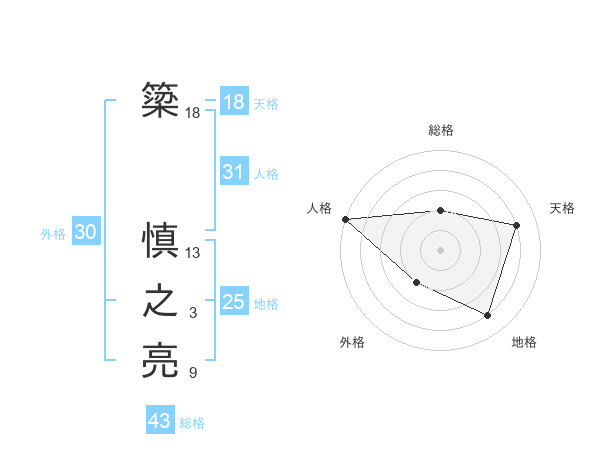 簗 慎之亮さんの天格は18画の4点!