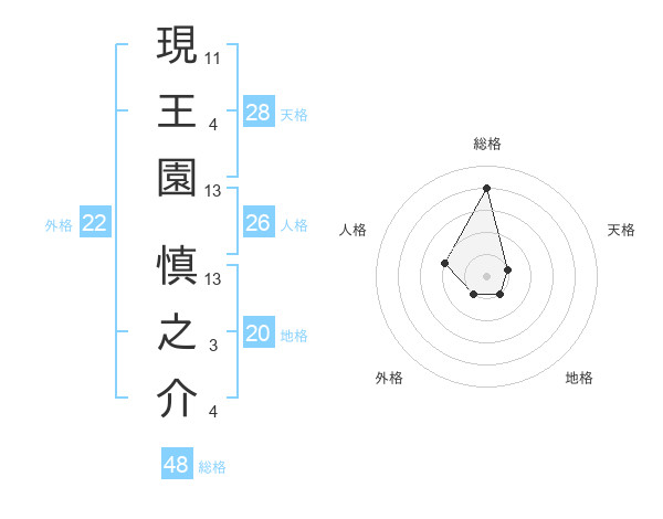現王園 慎之介さんを姓名の画数から五運を鑑定