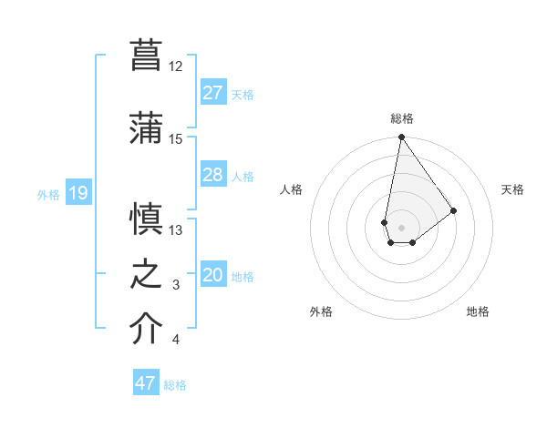 菖蒲 慎之介さんの総格は47画の5点!