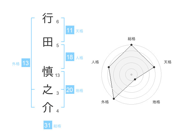 行田 慎之介さんを姓名の画数から五運を鑑定