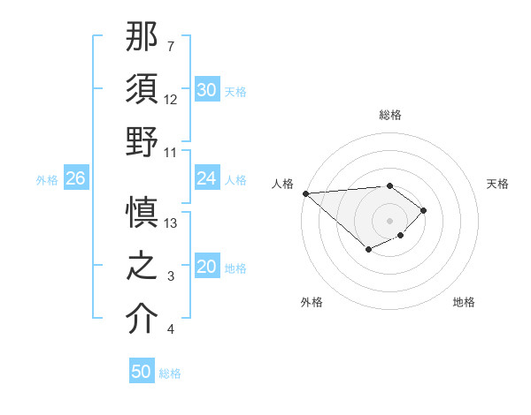 那須野 慎之介さんを姓名の画数から五運を鑑定