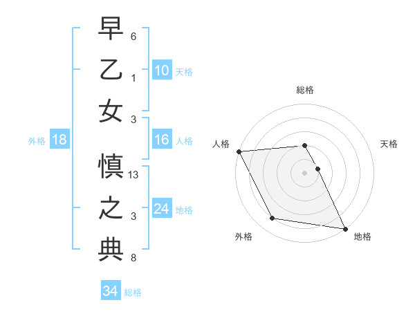 早乙女 慎之典さんの総格は34画の2点!
