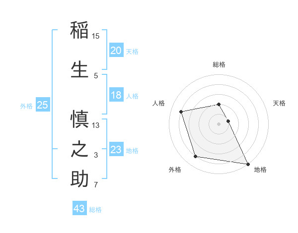 稲生 慎之助さんの総格は43画の2点!
