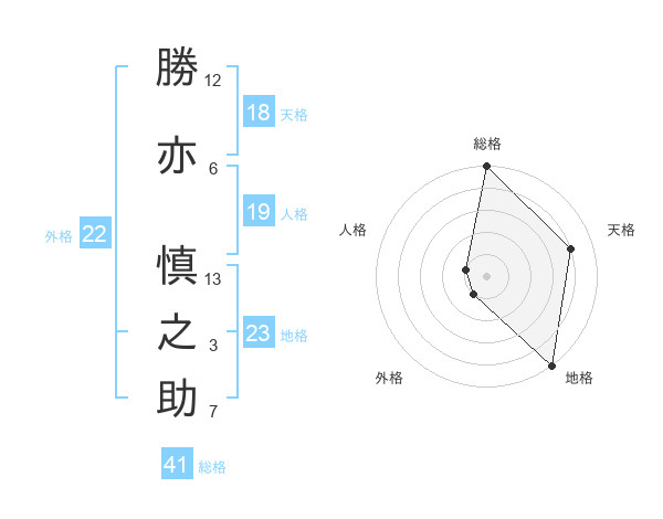 勝亦 慎之助さんを姓名の画数から五運を鑑定