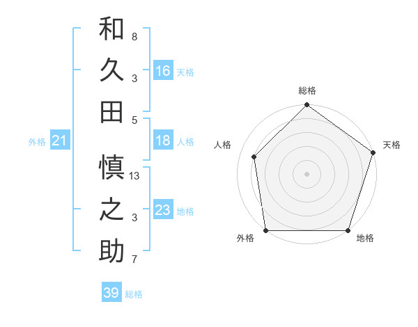 和久田 慎之助さんを姓名の画数から五運を鑑定