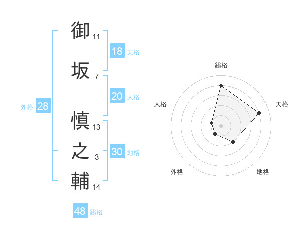 御坂 慎之輔さんを姓名の画数から五運を鑑定