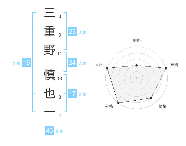 三重野 慎也一さんを姓名の画数から五運を鑑定