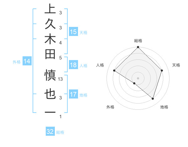 上久木田 慎也一さんを姓名の画数から五運を鑑定