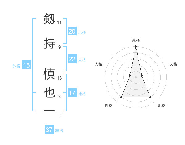 剱持 慎也一さんを姓名の画数から五運を鑑定