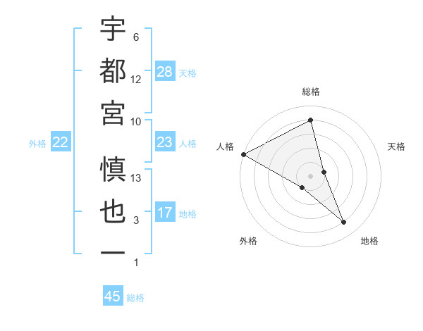 宇都宮 慎也一さんを姓名の画数から五運を鑑定