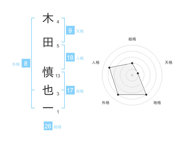 木田 慎也一さんを姓名の画数から五運を鑑定