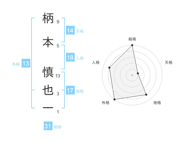 柄本 慎也一さんの外格は13画の5点!