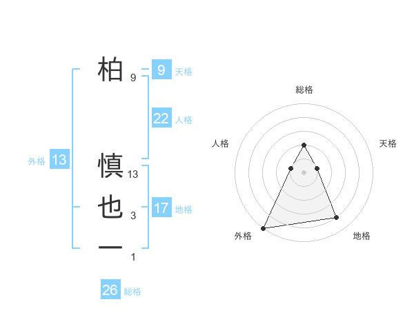 柏 慎也一さんの総格は26画の2点!