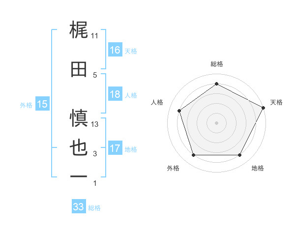 梶田 慎也一さんを姓名の画数から五運を鑑定