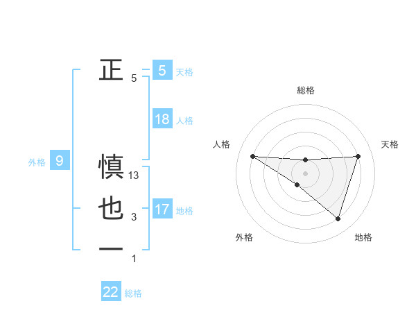 正 慎也一さんの天格は5画の4点!