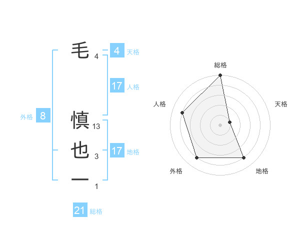 毛 慎也一さんの総格は21画の5点!