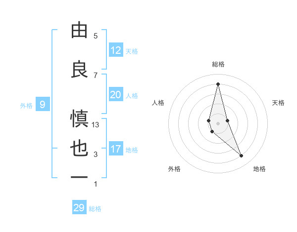 由良 慎也一さんを姓名の画数から五運を鑑定