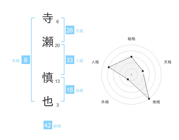 寺瀬 慎也さんの総格は42画の3点!
